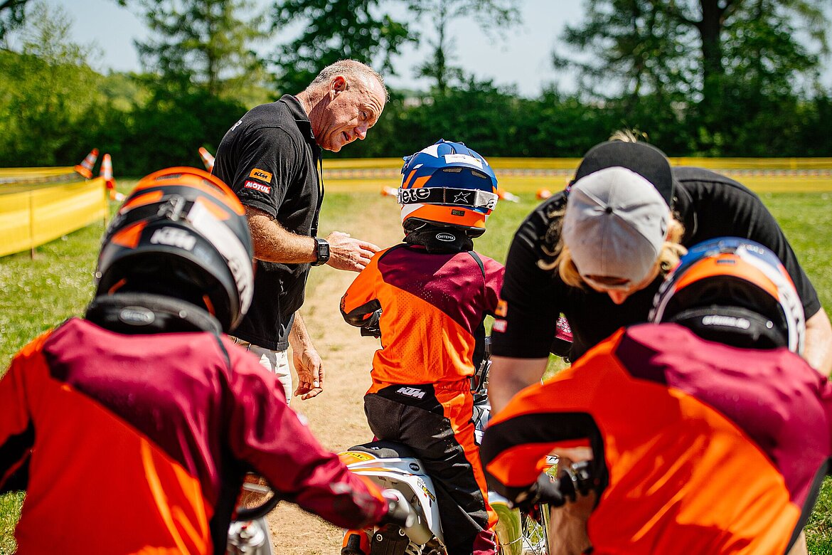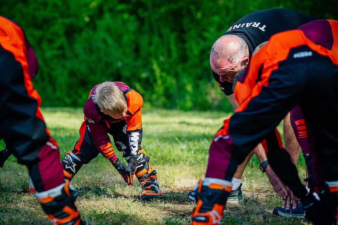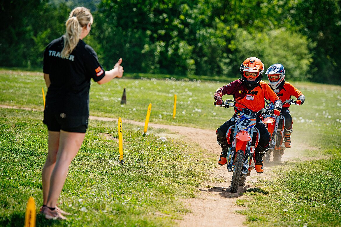 Wir bieten Dir die Möglichkeit, bei einem Schnupperkurs richtiges Motocross-Feeling zu erleben. An sieben Academy-Stützpunkten, die über ganz Deutschland verteilt sind, kannst Du Deine ersten Erfahrungen auf einem KTM-Motorrad machen. Unsere ausgebildeten und lizenzierten Trainer erklären Dir erste Schritte und helfen Dir, dass Du Dich auf der KTM gleich pudelwohl fühlst. Und keine Angst: Im ersten Schritt üben wir die Koordination und wärmen uns auf BMX-Rädern auf. Dann geht es auf die speziell von KTM vorbereiteten gedrosselten Einstiegsbikes. Ferner haben alle Motorräder einen Abreissschalter, der es den Trainern jederzeit ermöglicht, das Fahrzeug abzustellen.