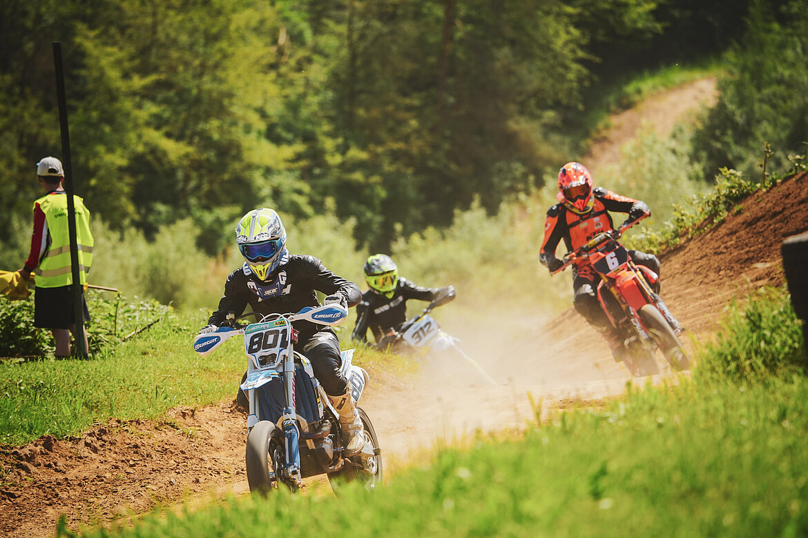 Beim Motocross geht es querfeldein durch freies Gelände oder durch den Wald. Die Piloten bewegen sich dabei immer im Grenzbereich, um die Kontrolle über ihre Cross-Maschinen zu behalten.